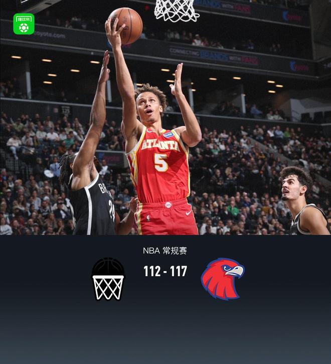 第四节篮网杰伦-马丁拿下8分,老鹰杰伦-约翰逊拿下9分,最终篮网112-117不敌老鹰